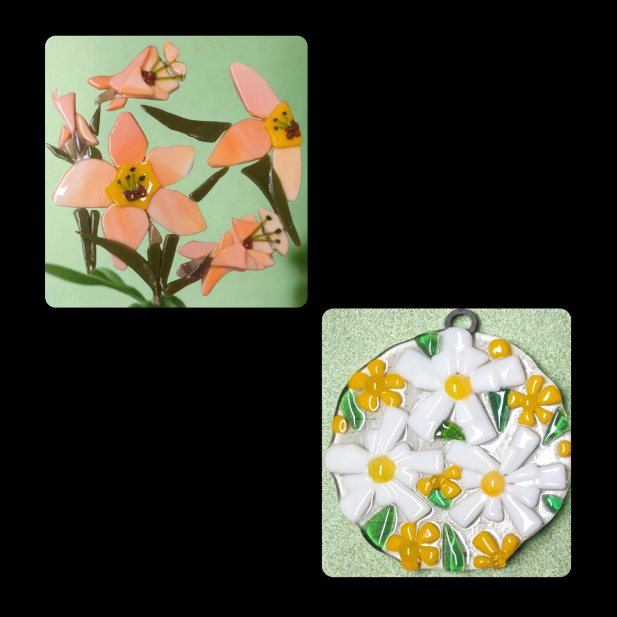 Capture the essence of Spring with a Spring Flower Suncatcher. Students will create Floral designs in a round or square shape using fused glass. Students can learn how to cut their glass or use pieces already cut. After creating your sun catcher, Sycamore Shades Studios will fire it in a glass fusing kiln. In approximately 1 week, you will pick up your sun catcher at the millworks in Studio 317, Sycamore Shades Studio. The time that you take to create your art is approximate and will depend on the design that you choose. The time is usually about 1.5 hours